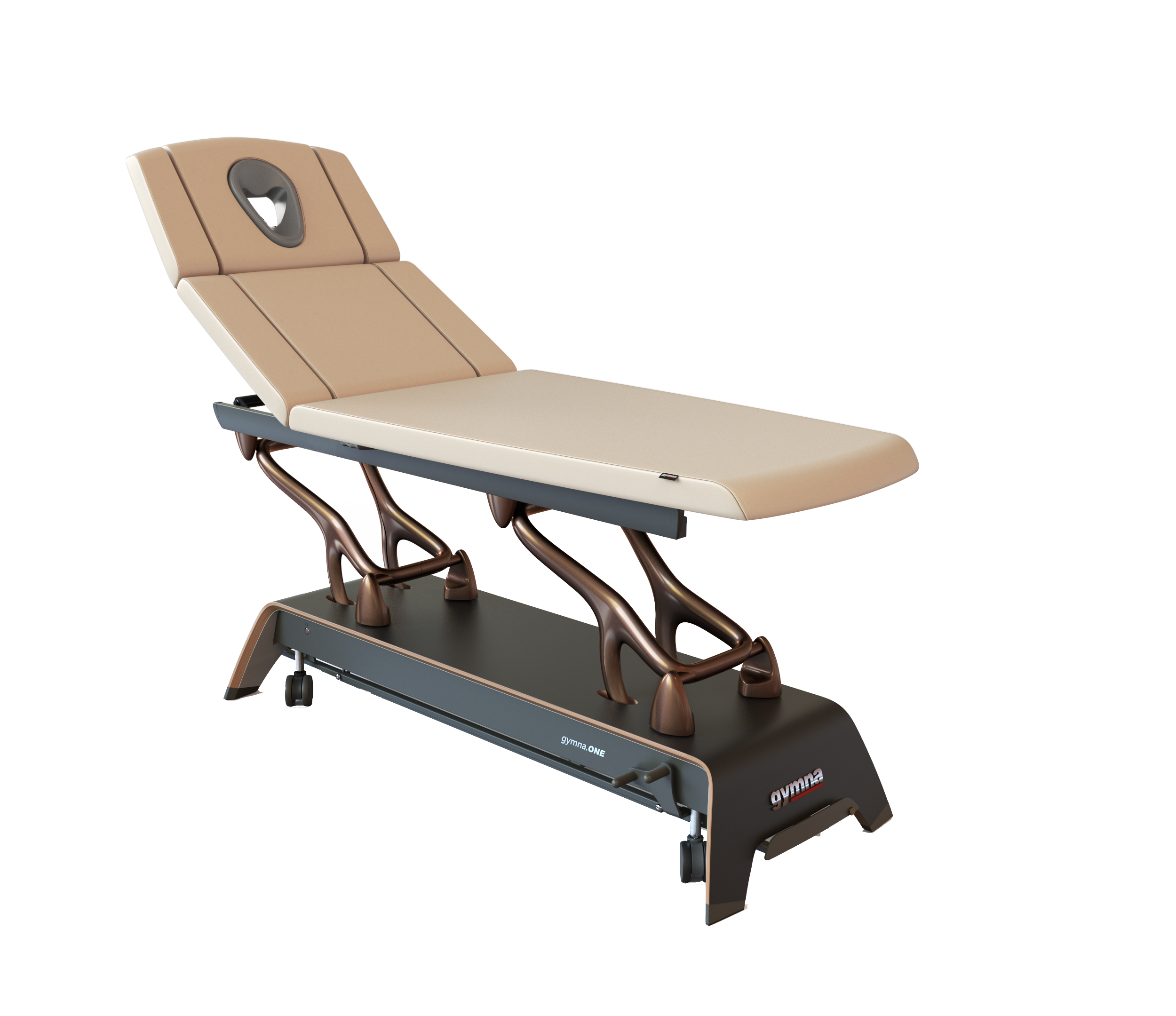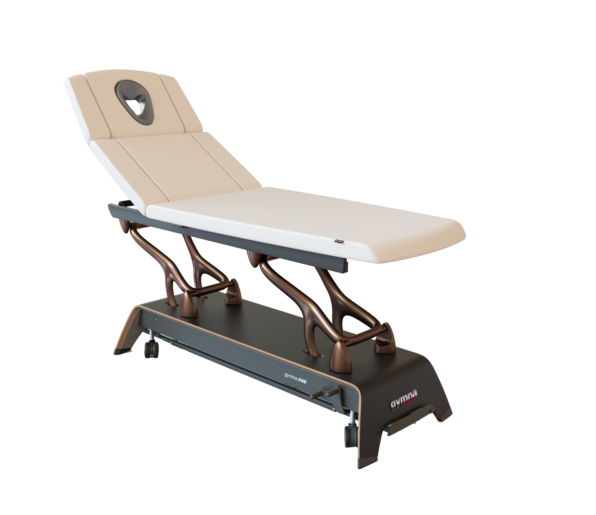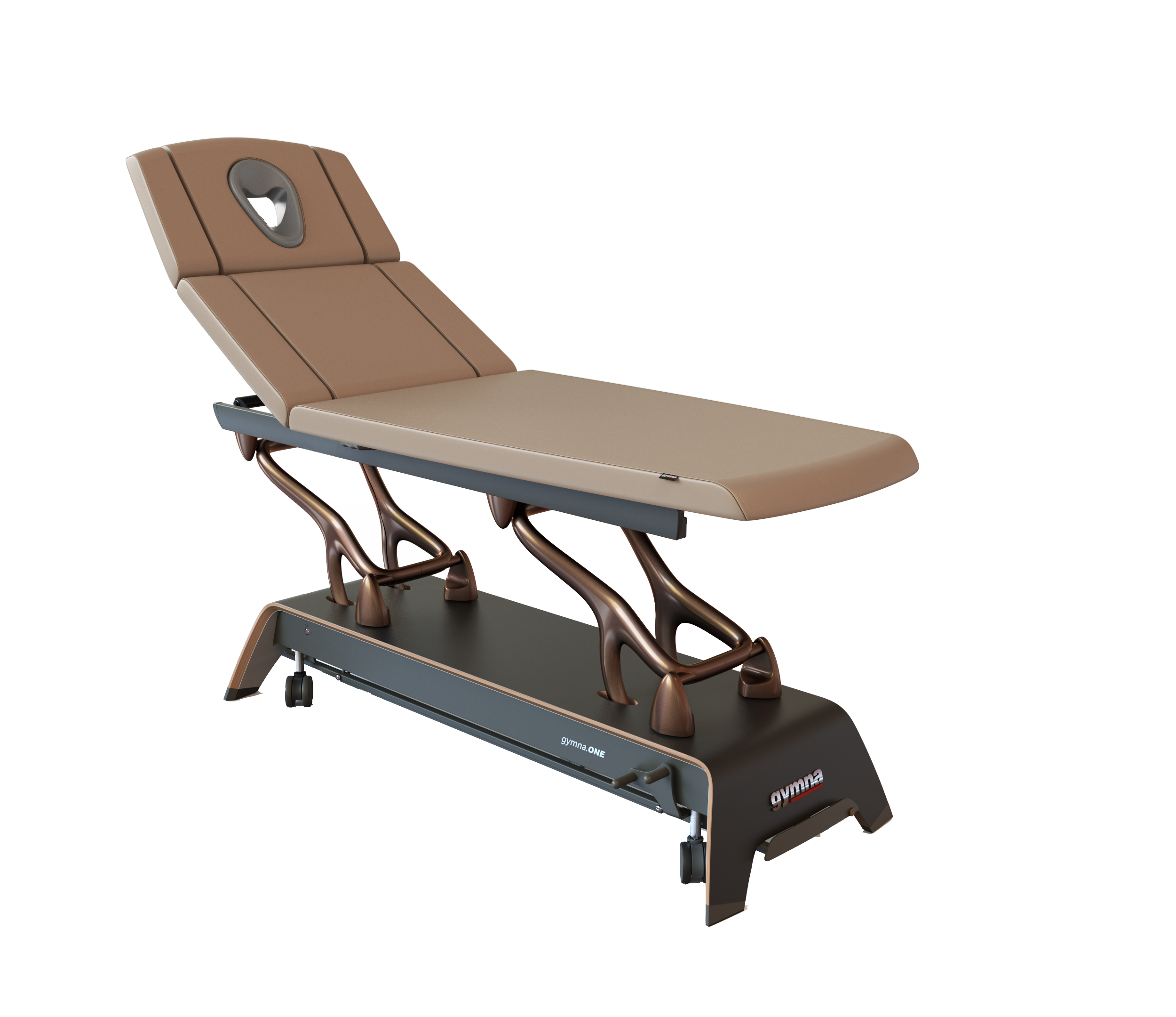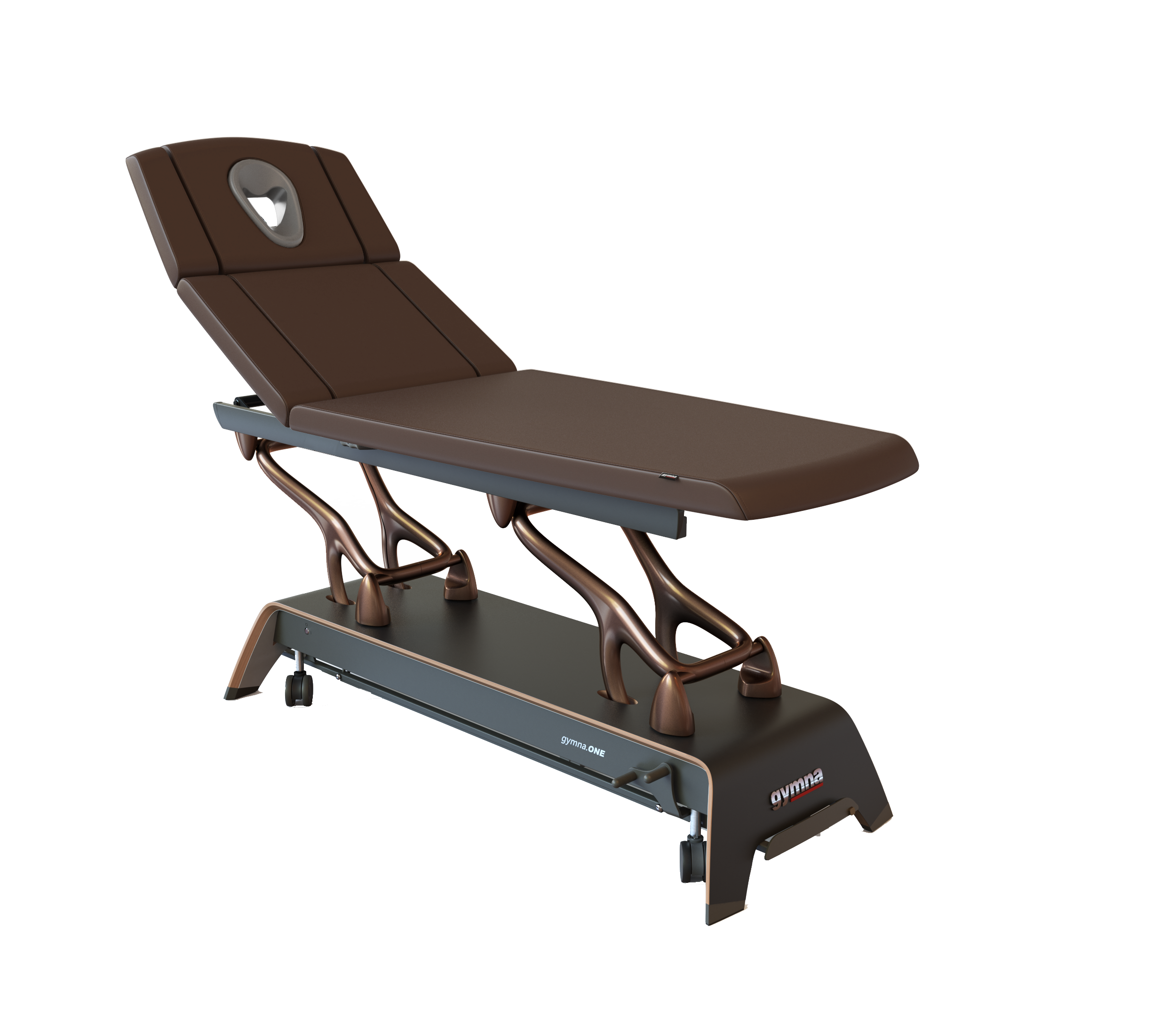 Die organisch geformten Aluminiumarme, der exquisit gestaltete, mehrschichtige Holzfuß und der funktionale, aber elegante Kantenschutz machen gymna.ONE zu einem wahren Kunstwerk. Die Verbindung von Handwerkskunst und Design ergibt mehr als nur eine funktionale Behandlungsliege. Sie verwandelt jeden Raum in ein einladendes Ambiente aus Komfort und Stil.