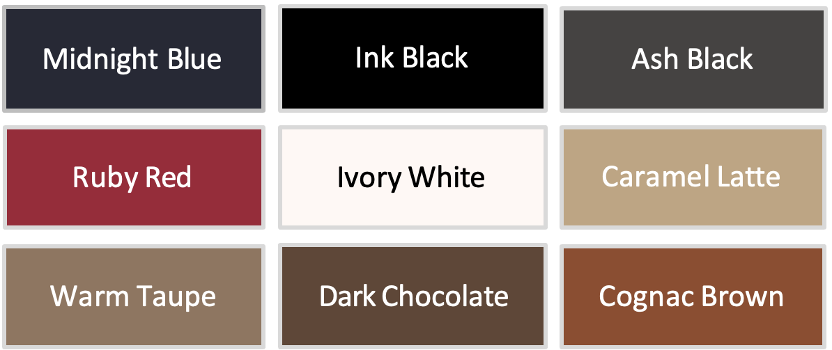 - Auswahl Polsterbezug: 9 verschiedene PU-Bezüge